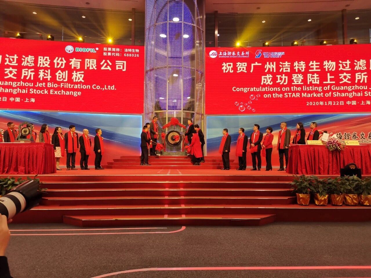 1月22日,廣州潔特生物過濾股份有限公司在上海證券交易所科創(chuàng)板成功上市,證券簡稱為“潔特生物”,證券代碼為“688026”,成為廣東省2020年首家科創(chuàng)板上市企業(yè),也是黃埔區(qū)廣州開發(fā)區(qū)第二家科創(chuàng)板上市企業(yè)。廣州市政府副秘書長刁愛林、黃埔區(qū)副區(qū)長葉偉雄、廣州市科技局副巡視員石鵬飛、廣州市金融監(jiān)管局副巡視員李貴遠等領導和嘉賓參加了企業(yè)上市儀式。